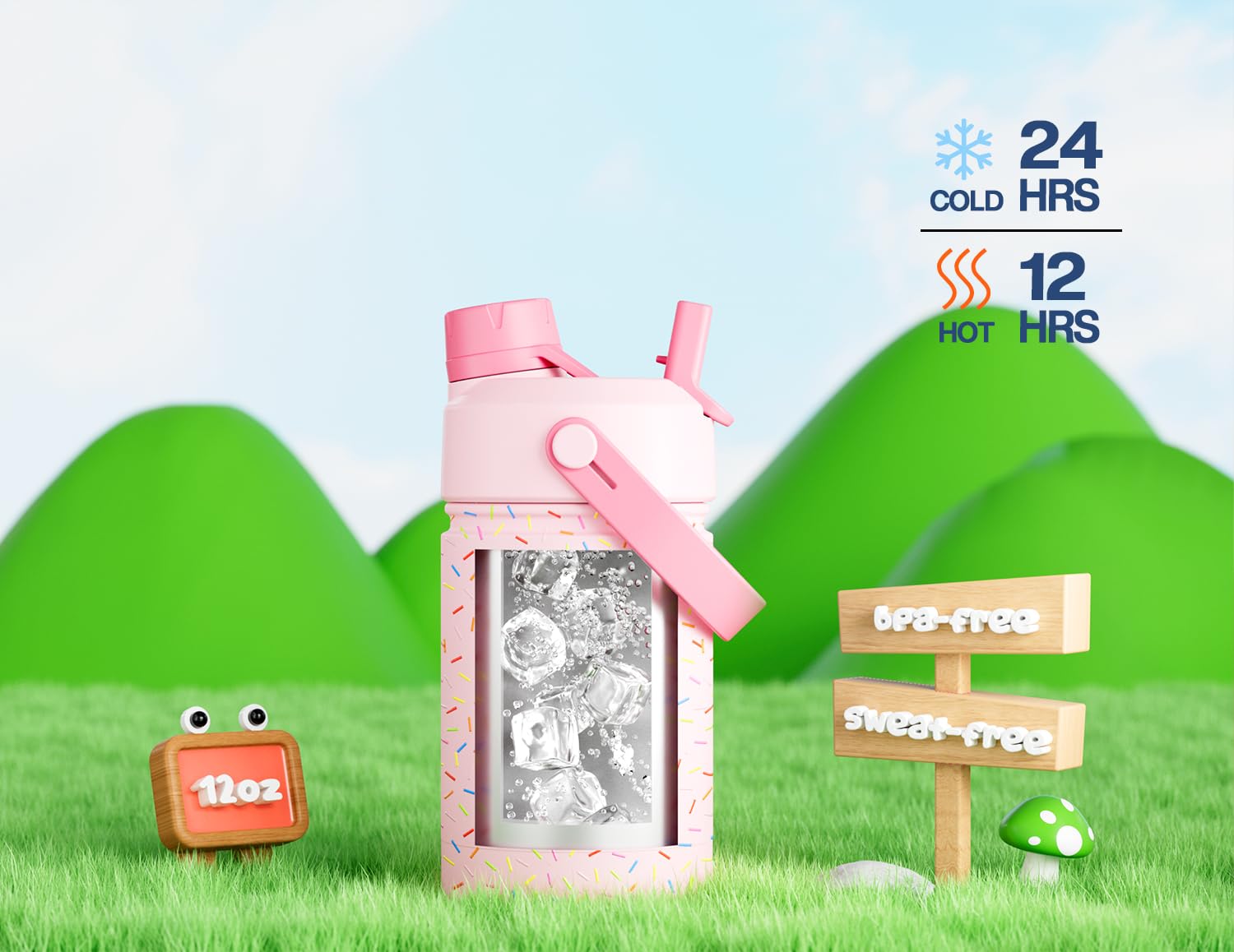 - All-Day Refreshment: Double-wall vacuum insulation keeps drinks cold for up to 24 hours or warm for 12. Whether it's water, juice, or cocoa, kids enjoy every sip at just the right temp.
