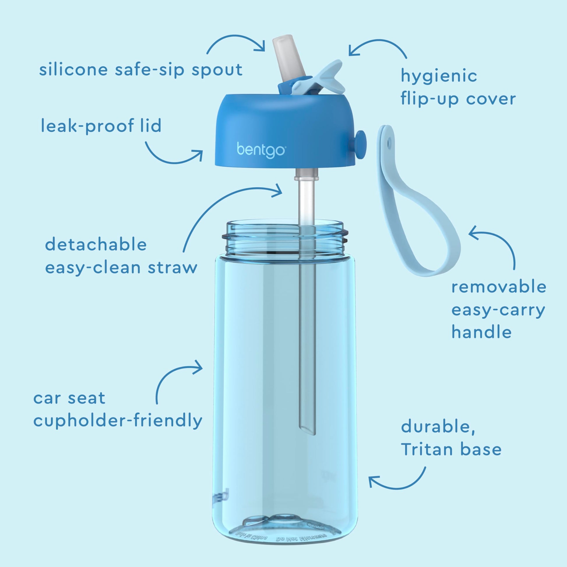 Bentgo Kids Water Bottle - Leak-Proof, Durable Tritan, BPA-Free 15 oz. Cup for Kids/Toddlers Ages 3+ - Safe Sip Spout, Carrying Handle, & Dishwasher Safe for School, Sports, Daycare & Camp (Blue)