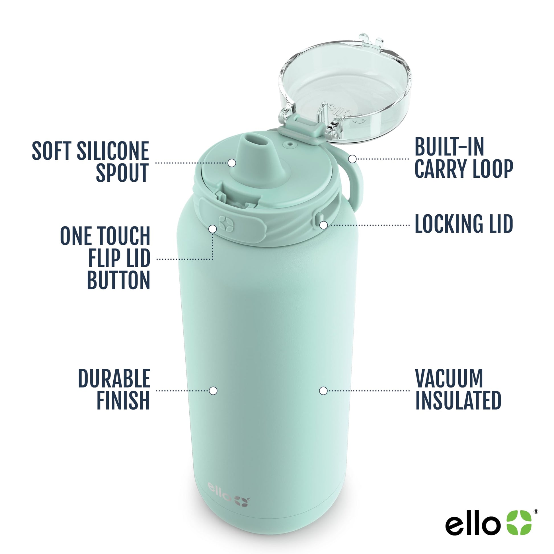 Details: Elevate your hydration experience with the Ello Cooper Vacuum Insulated Stainless Steel Water Bottle. Available in 18oz, 22oz, 32oz, and 40oz sizes, it’s a perfect fit for every age. Plus, the 18oz and 22oz sizes are car cup compatible. Featuring a soft silicone spout and a secure, locking dome lid, Cooper ensures your drink surface stays fully covered during transport. The BPA-free internal plastic straw provides safe and easy sipping. Constructed from premium 18/8 stainless steel with an ultra-durable powder coat finish, this bottle resists chipping and rust for lasting durability. Enjoy refreshingly cold drinks for over 24 hours. All parts are top-rack dishwasher safe, but handwashing is recommended for longevity. The spout can be fully disassembled for thorough cleaning, reaching all nooks and crannies with ease. Express your style with our selection of vibrant colors, allowing Cooper to complement your lifestyle and personal fashion statement.