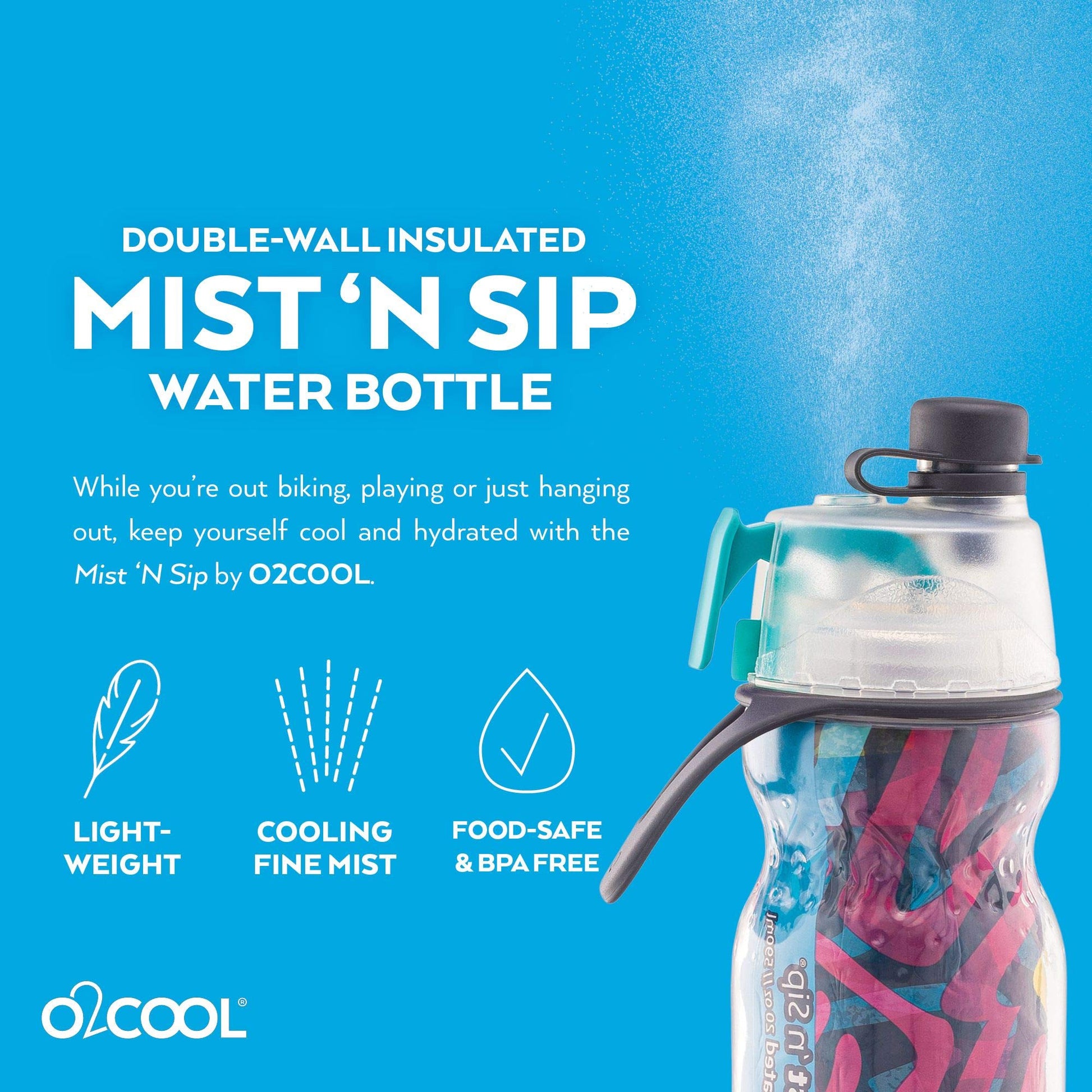 O2COOL Mist 'N Sip Misting Water Bottle 2-in-1 Mist And Sip Function With No Leak Pull Top Spout Reusable Sports Water Bottle - 20 oz (Artist)