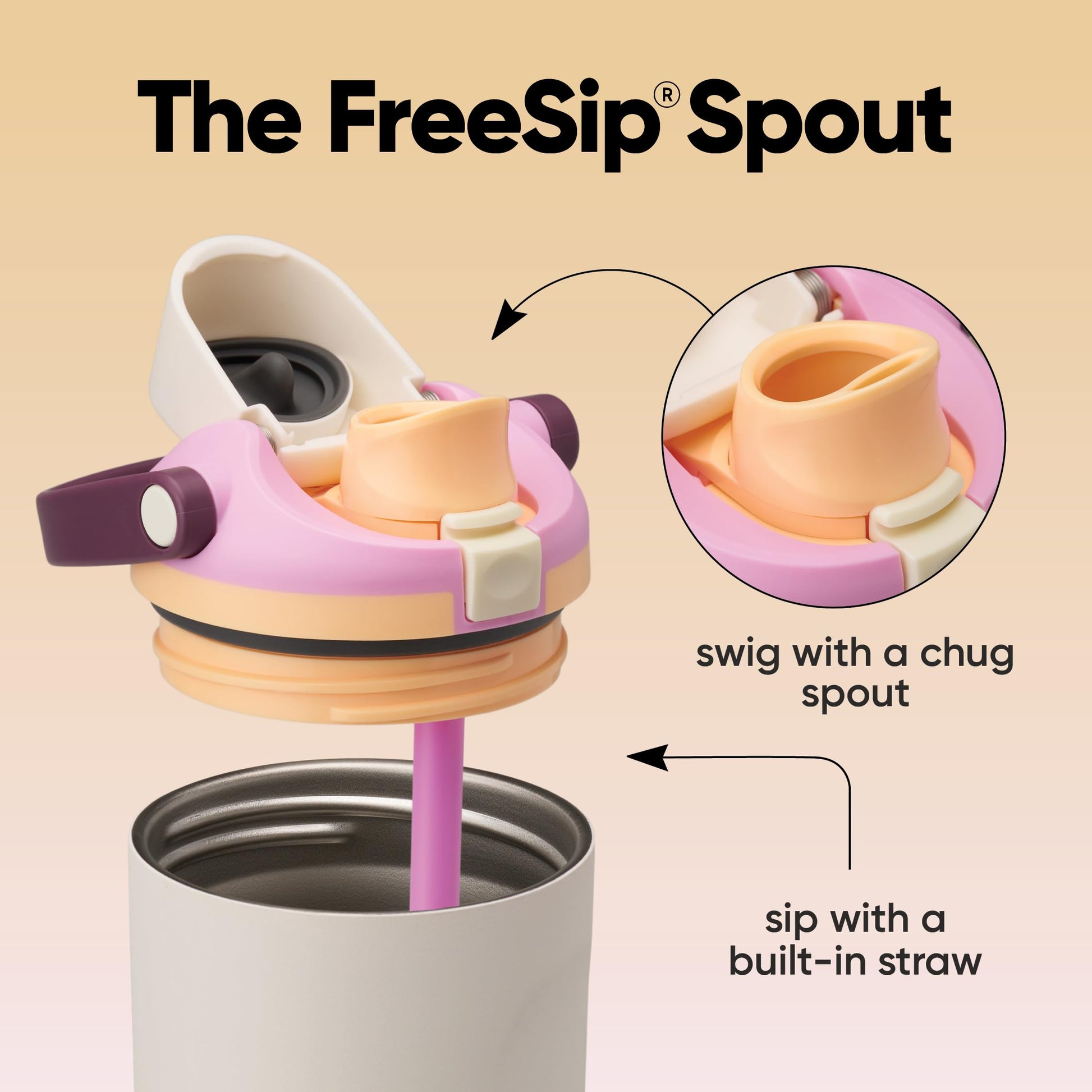 - Choose your sip style—straw or swig: Patented 2-in-1 FreeSip spout is one of a kind; it lets you sip upright through the built-in straw or swig by tilting back the spout