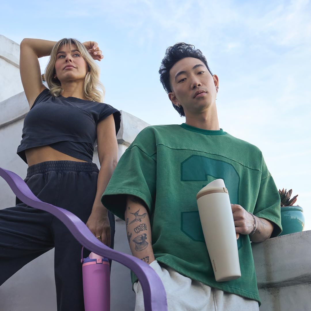 - 40-ounce insulated stainless-steel tumbler with FreeSip spout and push-button lid: For serious hydration; durable, unique design and patented spout; convenient push-button lid for easy opening